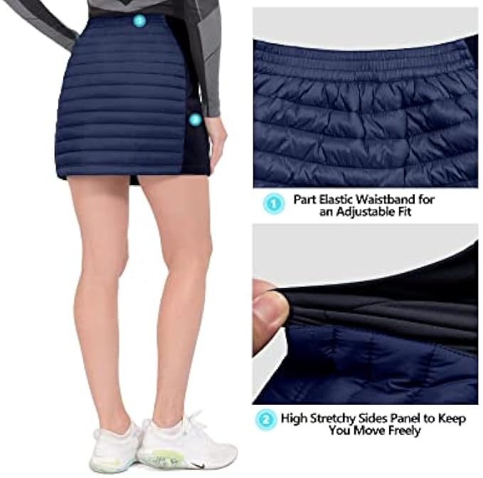 • 舒適版型:鋪棉短裙的側邊和腰帶採用彈性針織布料製成,防止運動不受限制,讓您進行任何活動。