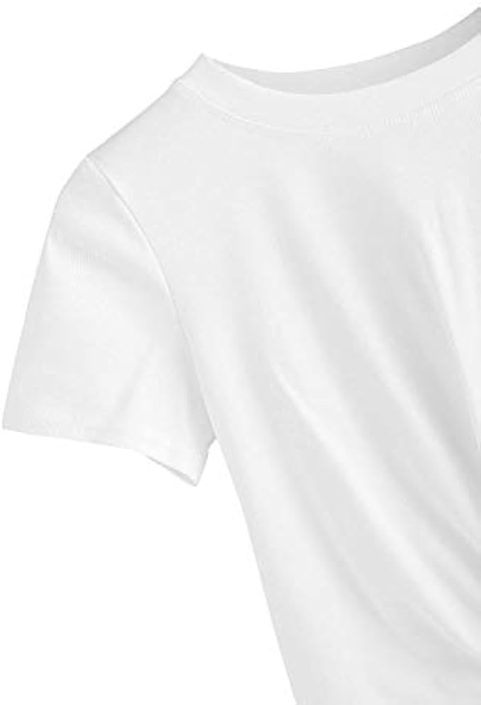 MakeMeChic 女式夏季露脐上衣纯色短袖前扭结 T 恤