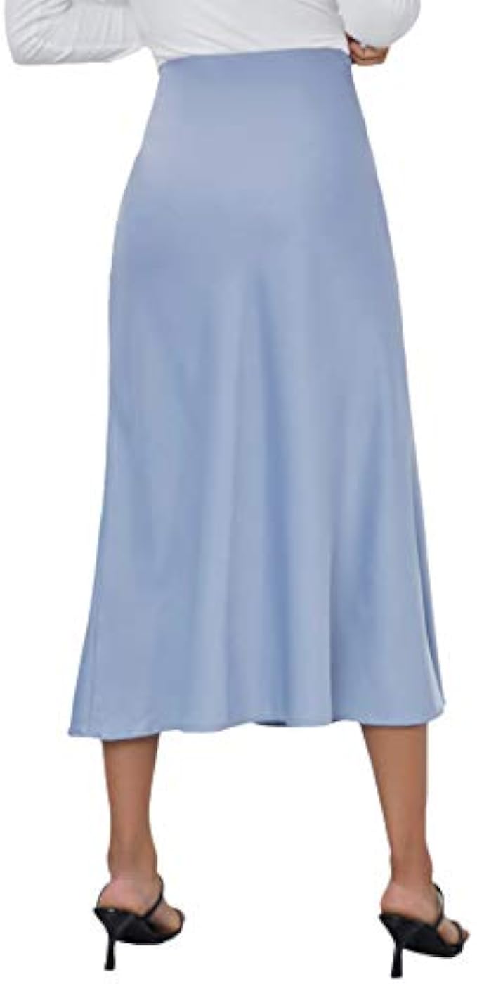 SheIn Women's High Waist Satin Skirts Split Thigh Solid Zipper Midi Skirt